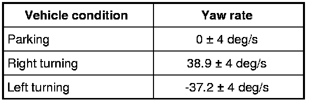 4) Check "Yaw Rate Sensor" under "DATA LIST" of SUZUKI scan tool in the following vehicle conditions.