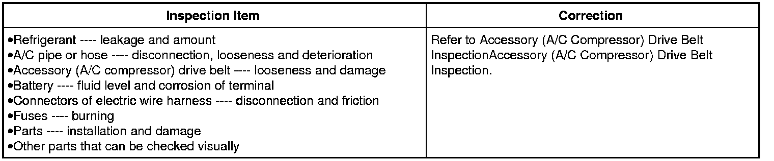 Visually check the following parts and systems: