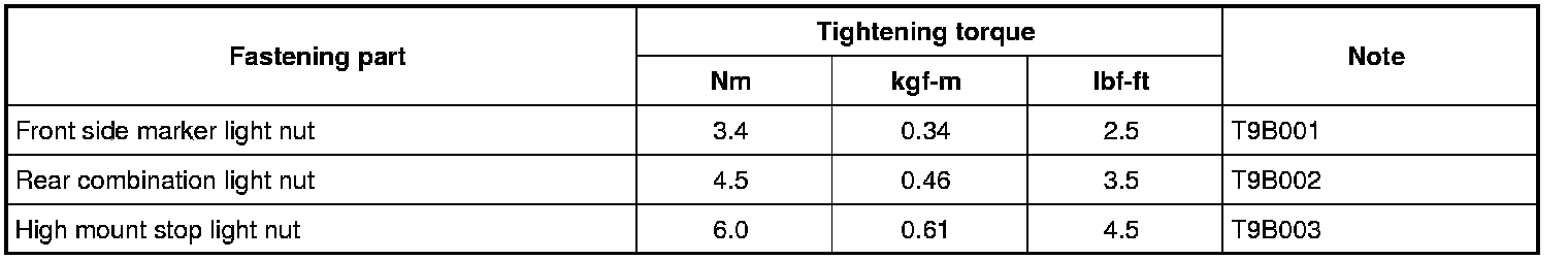 Tightening Torque Specifications