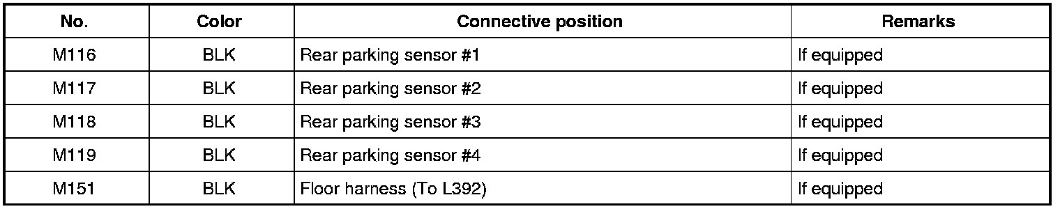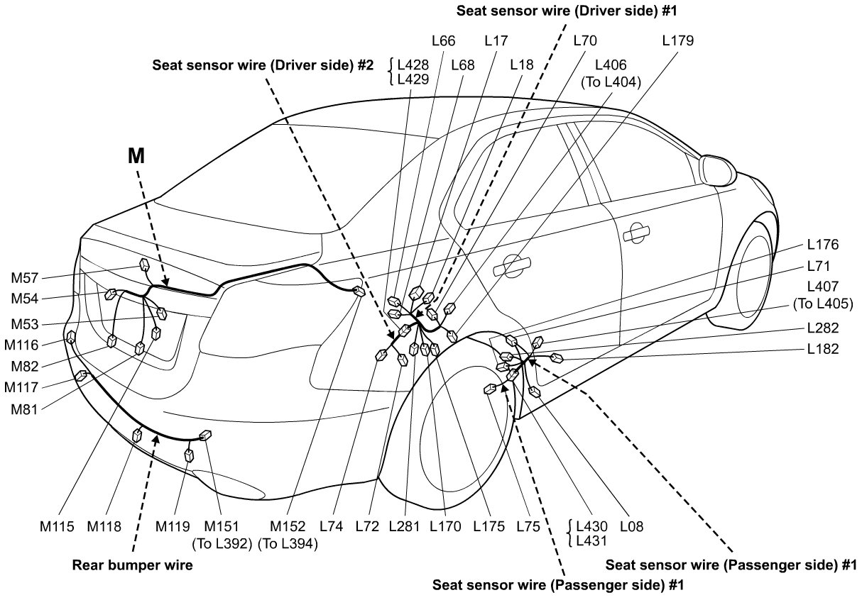 L: Seat Sensor Wire / M: Trunk Harness, Rear Bumper Wire