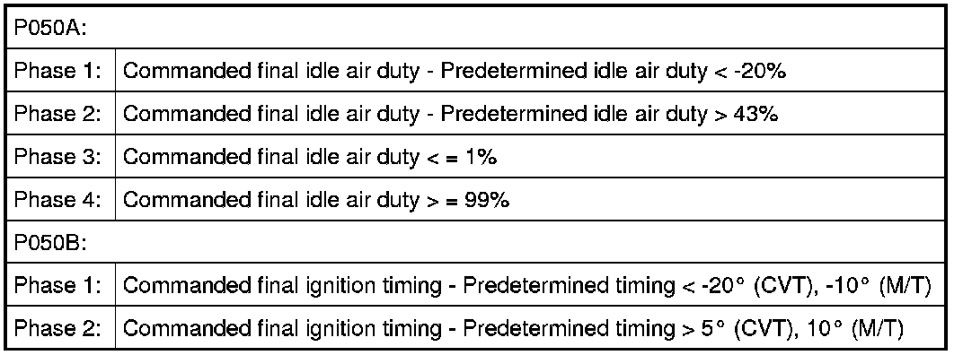 The ECM retards the ignition timing and increases the idle air to quickly increase the catalyst temperature at cold start to reduce emissions. The ECM monitors the ignition timing and the idle air for cold starts. If the idle air or the ignition timing is out of specification, the ECM will set DTC.