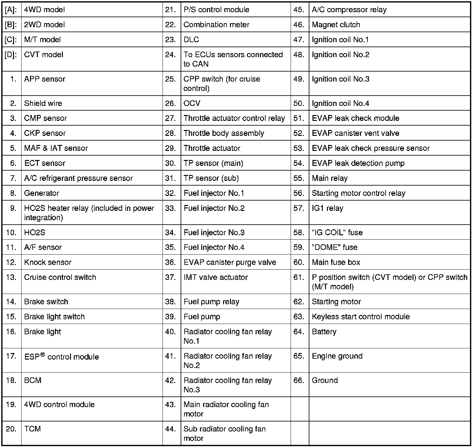 Terminal Arrangement of ECM Connector (Viewed from Harness Side)