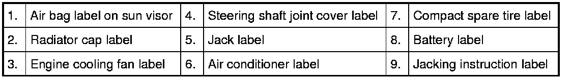 The figure shows main labels among others that are attached to vehicle components.