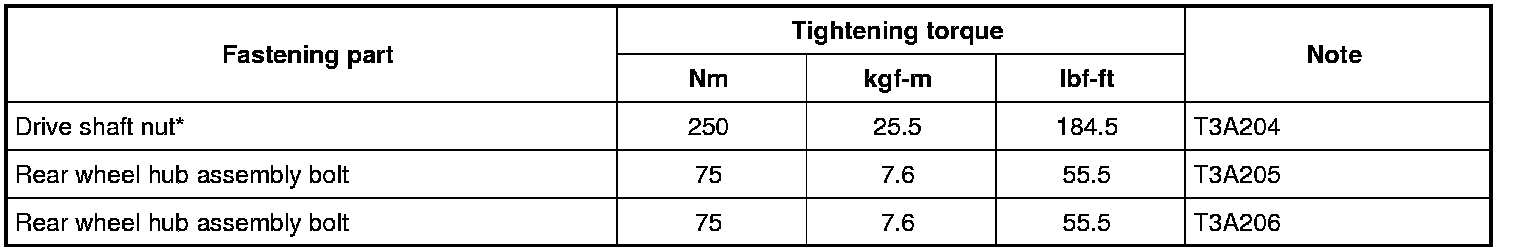 Tightening Torque Specifications