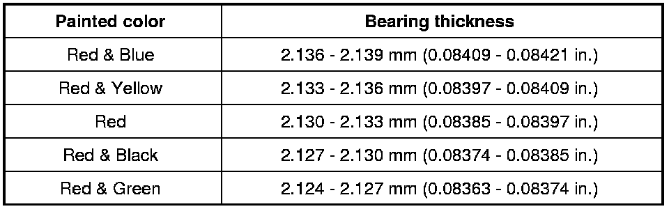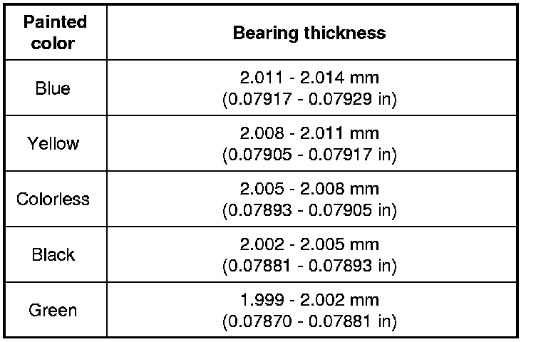 Standard size crankshaft main bearing thickness