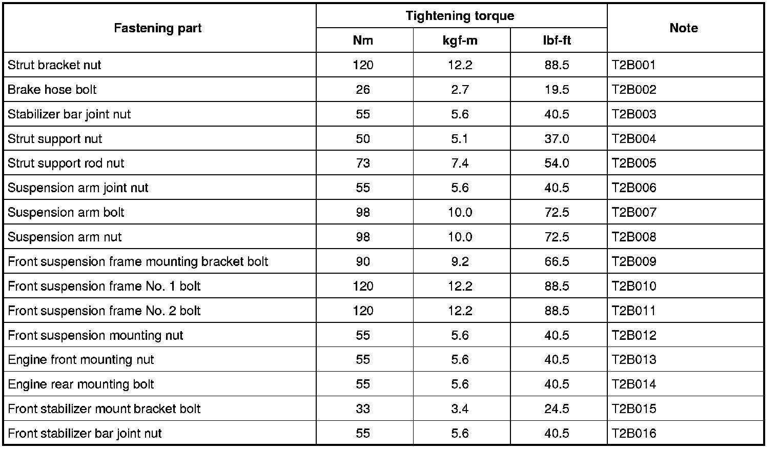 For the tightening torques of fasteners not specified in this section, refer to Fastener Information Fasteners Information.