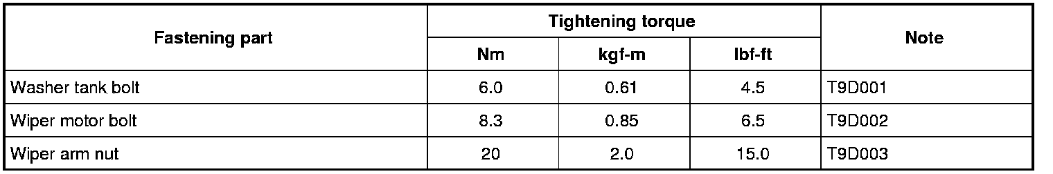 Tightening Torque Specifications