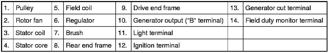 The generator is of a built-in IC regulator type. Internal components are connected electrically as shown in figure.