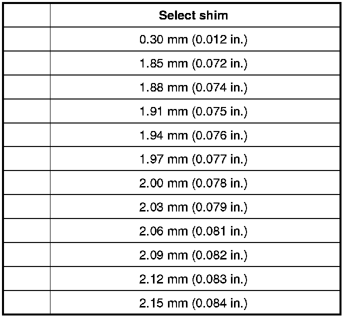 e) Select a shim closest to the calculated value (necessary shim thickness) from among the available shims or combine shims to become closest to calculated value.