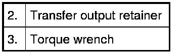 1) Remove transfer output retainer bolts (1) and transfer output retainer assembly (2) and shim (3).