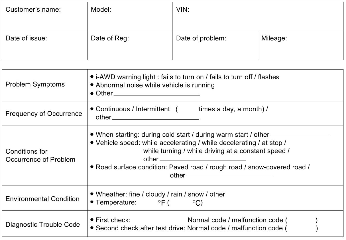 For this purpose, use a questionnaire form such as the one shown below to facilitate information collection, specifically the points required for proper analysis and diagnosis.