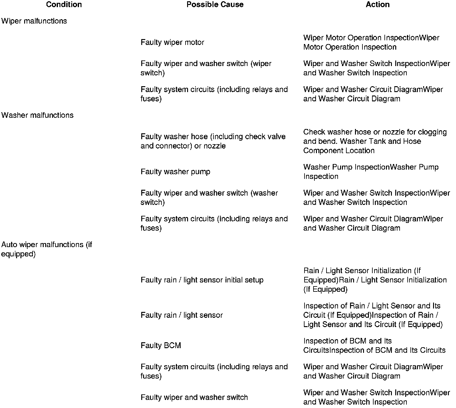 Wiper and Washer Symptom Diagnosis