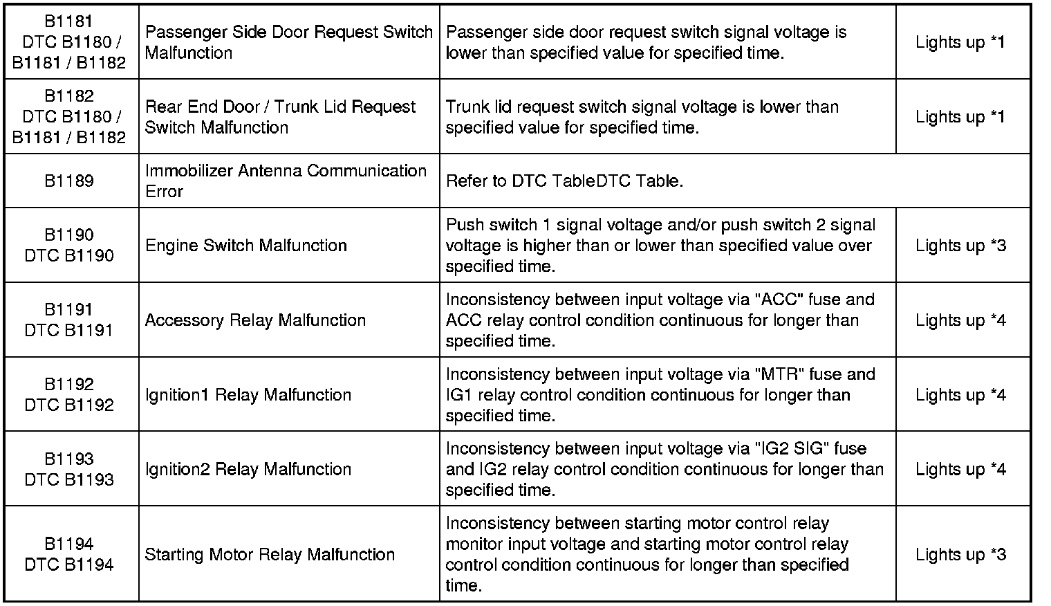 - *4: Immobilizer indicator light lights up when relay is turned on. "SERVICE START SYSTEM" is shown in information display.
