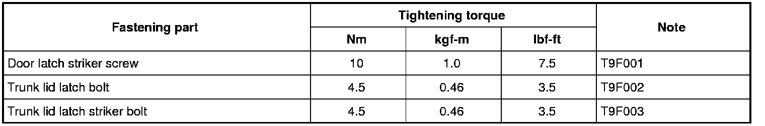 For the tightening torques of fasteners not specified in this section, refer to Fastener Information Fasteners Information.