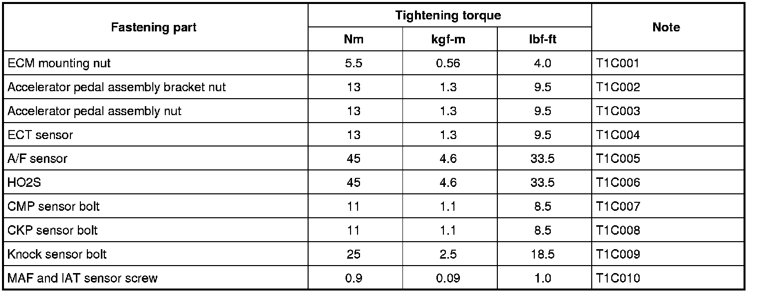 Tightening Torque Specifications