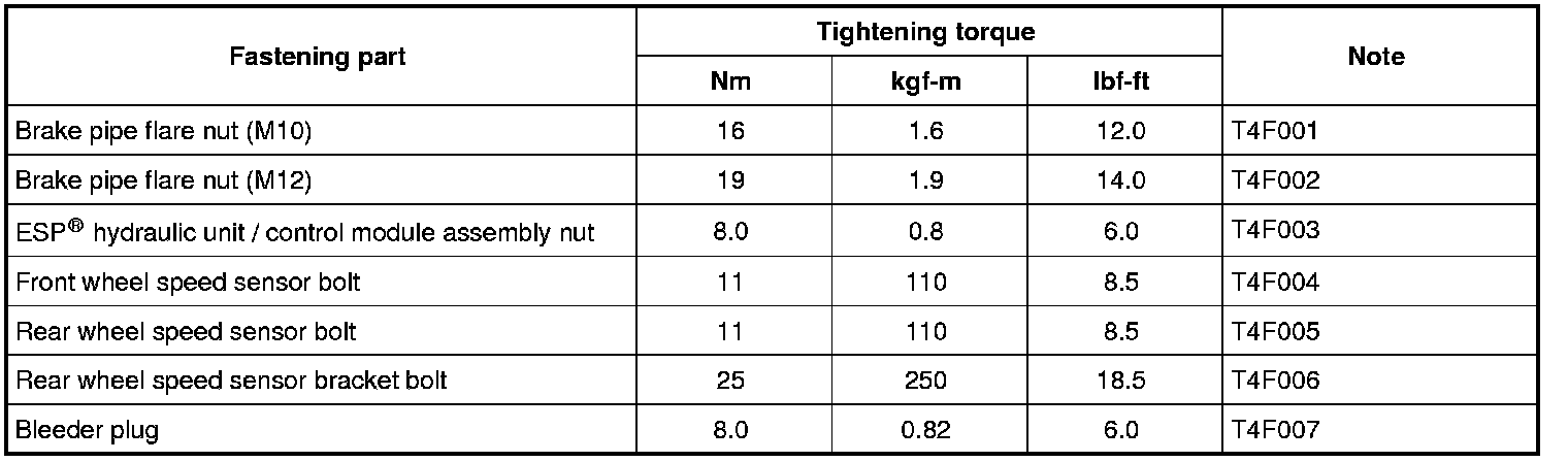 For the tightening torques of fasteners not specified in this section, refer to Fastener Information Fasteners Information.