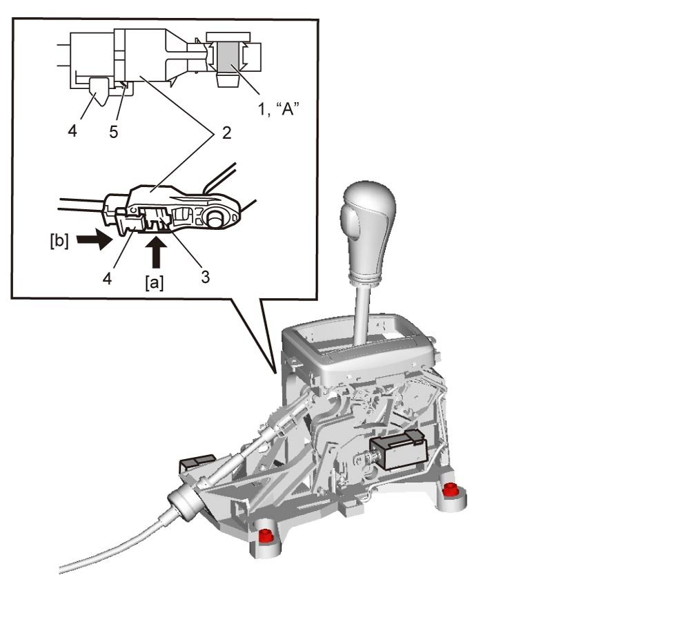 5) Remove adjuster case (cable end) from select lever pin of select lever assembly. Select Cable Components