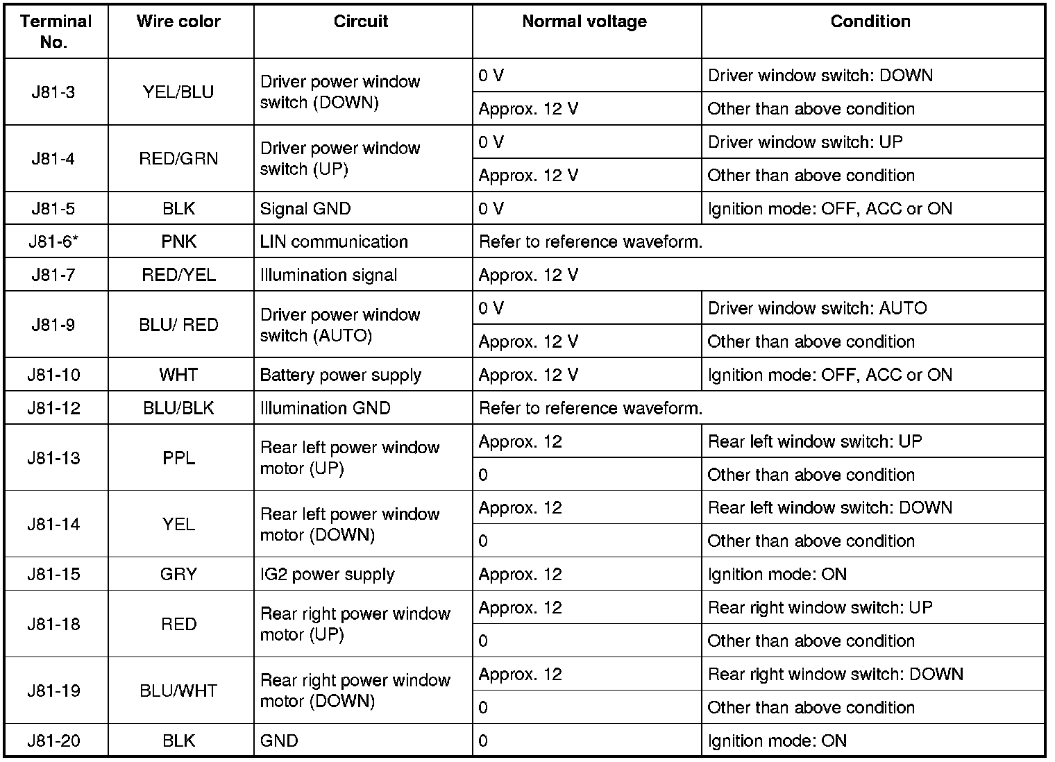 - Waveforms may vary with measurement conditions and vehicle specifications.