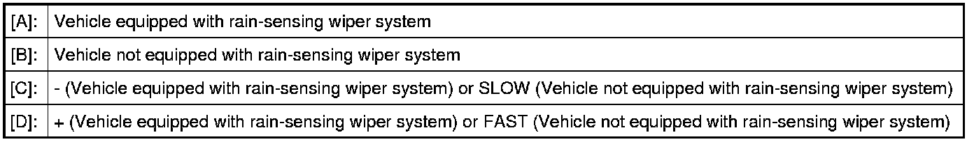 Check continuity between terminals at each switch position. If check result is not as specified, replace wiper and washer switch.