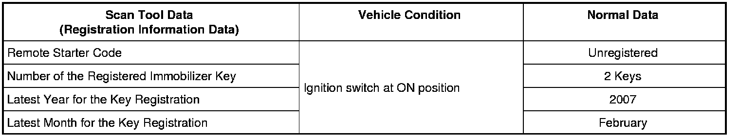 Number of the Registered Immobilizer Key (0 - 4 keys)
