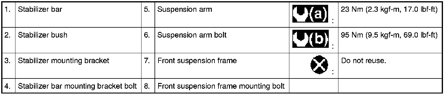 Front Suspension Frame, Stabilizer Bar and/or Bush Components
