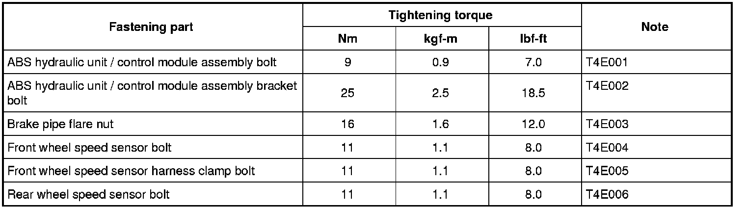 Tightening Torque Specifications