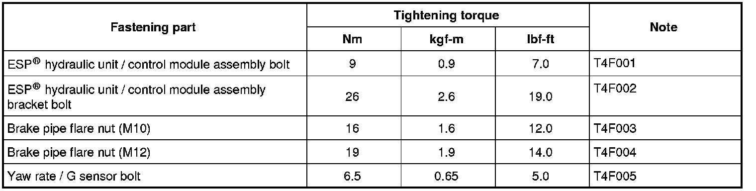 Tightening Torque Specifications