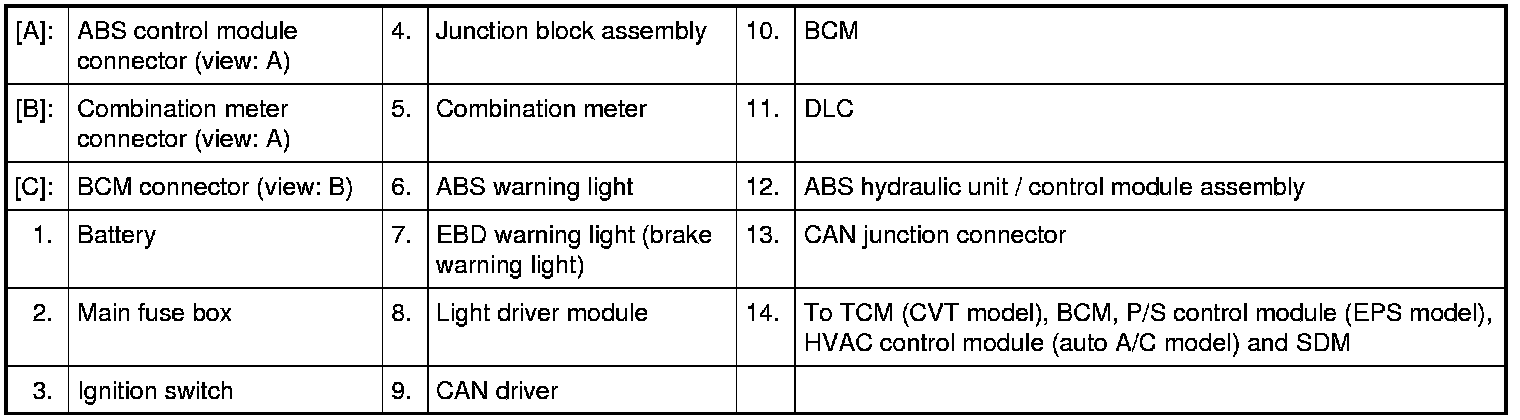 2. ABS hydraulic unit / control module assembly power supply and ground circuit check