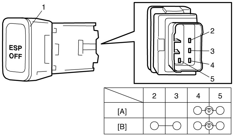 If check result is not as specified, replace ESP(R) OFF switch (1).
