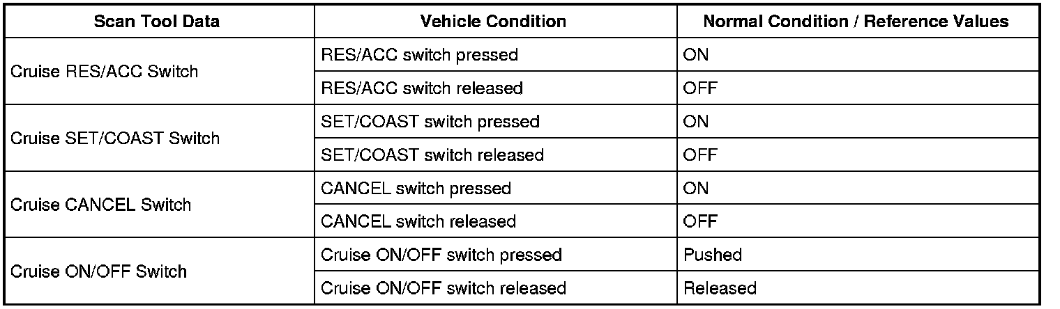 Cruise CANCEL Switch (ON, OFF)