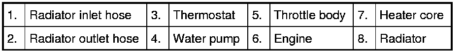 While the engine is warmed up (thermostat closed), coolant circulates as follows.