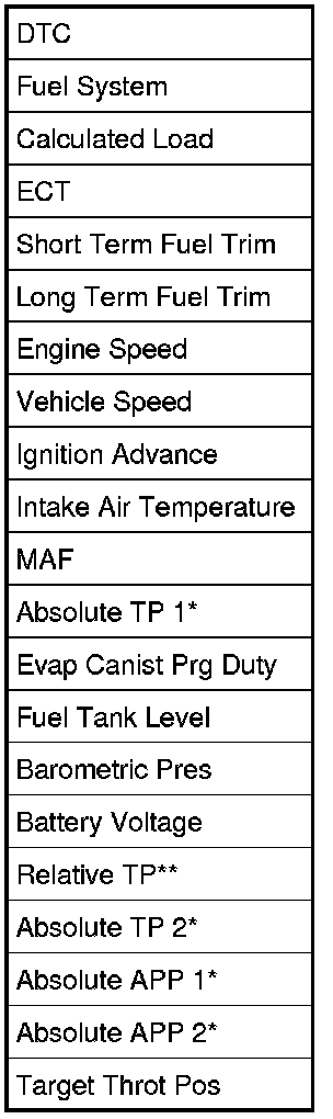 - For relative TP with asterisks (**) in above table, it indicates by formula ((output voltage - output voltage at closed throttle position) / power supply voltage).