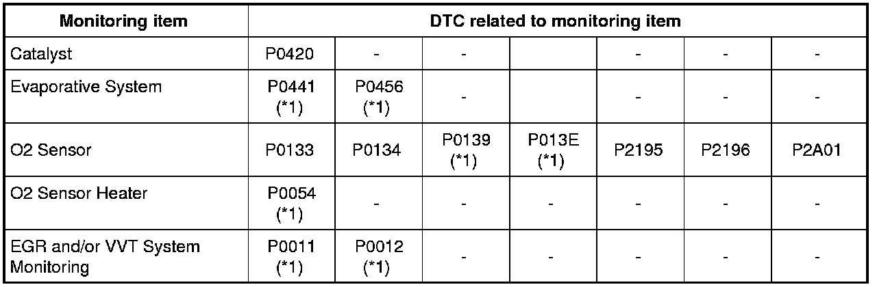 - By utilizing this system readiness test, it is possible to confirm that all DTC confirmation procedure for each system has been completed or incomplete. For all DTCs related to each system, refer to the table below.