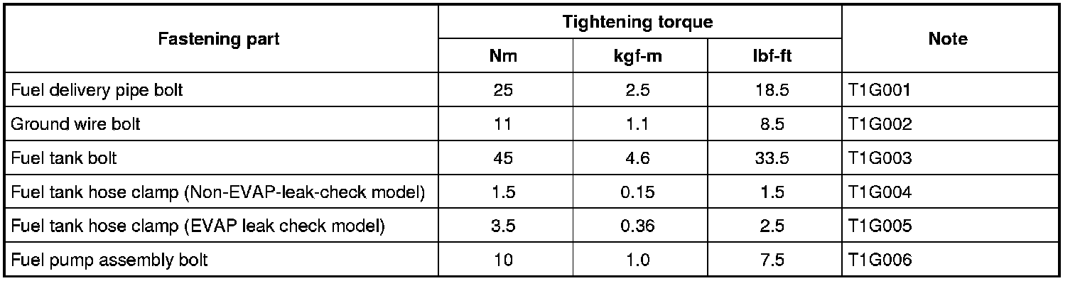 For the tightening torques of fasteners not specified in this section, refer to Fastener Information Fasteners Information.