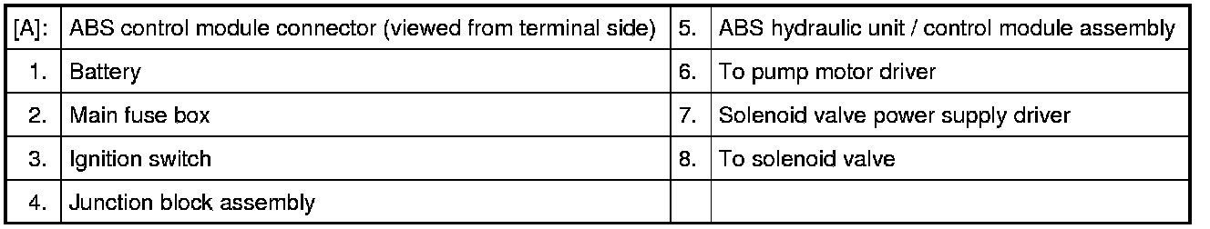 When the ignition switch is turned ON, power supply is supplied to ABS control module. And, power supply is supplied to pump motor and solenoid valve in other line by the switching function in ABS control module.