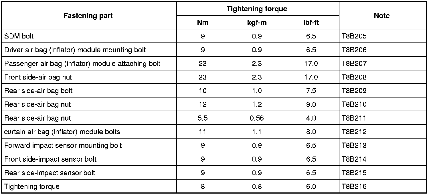 Tightening Torque Specifications