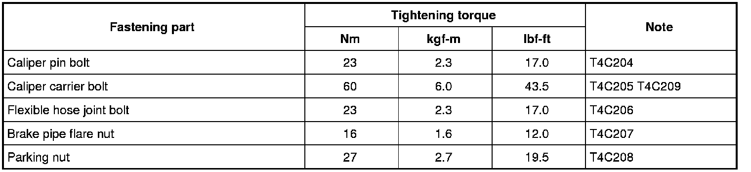 Tightening Torque Specifications