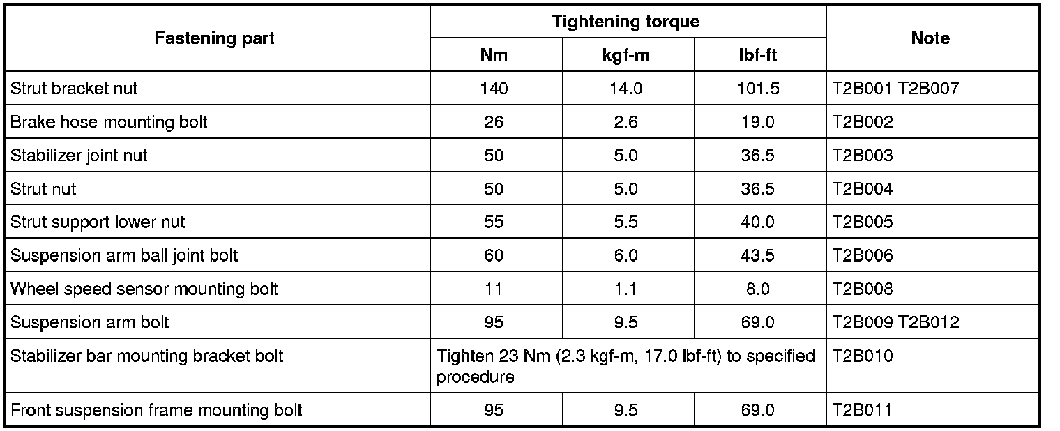 For the tightening torques of fasteners not specified in this section, refer to Fastener Information Fasteners Information.