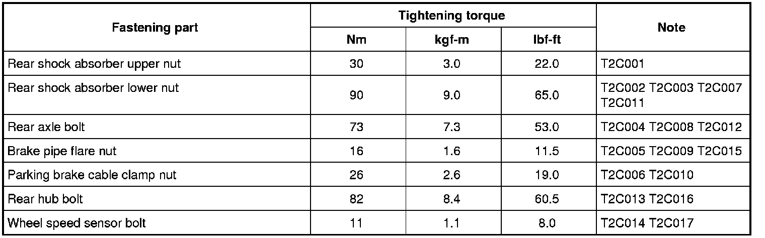 For the tightening torques of fasteners not specified in this section, refer to Fastener Information Fasteners Information.