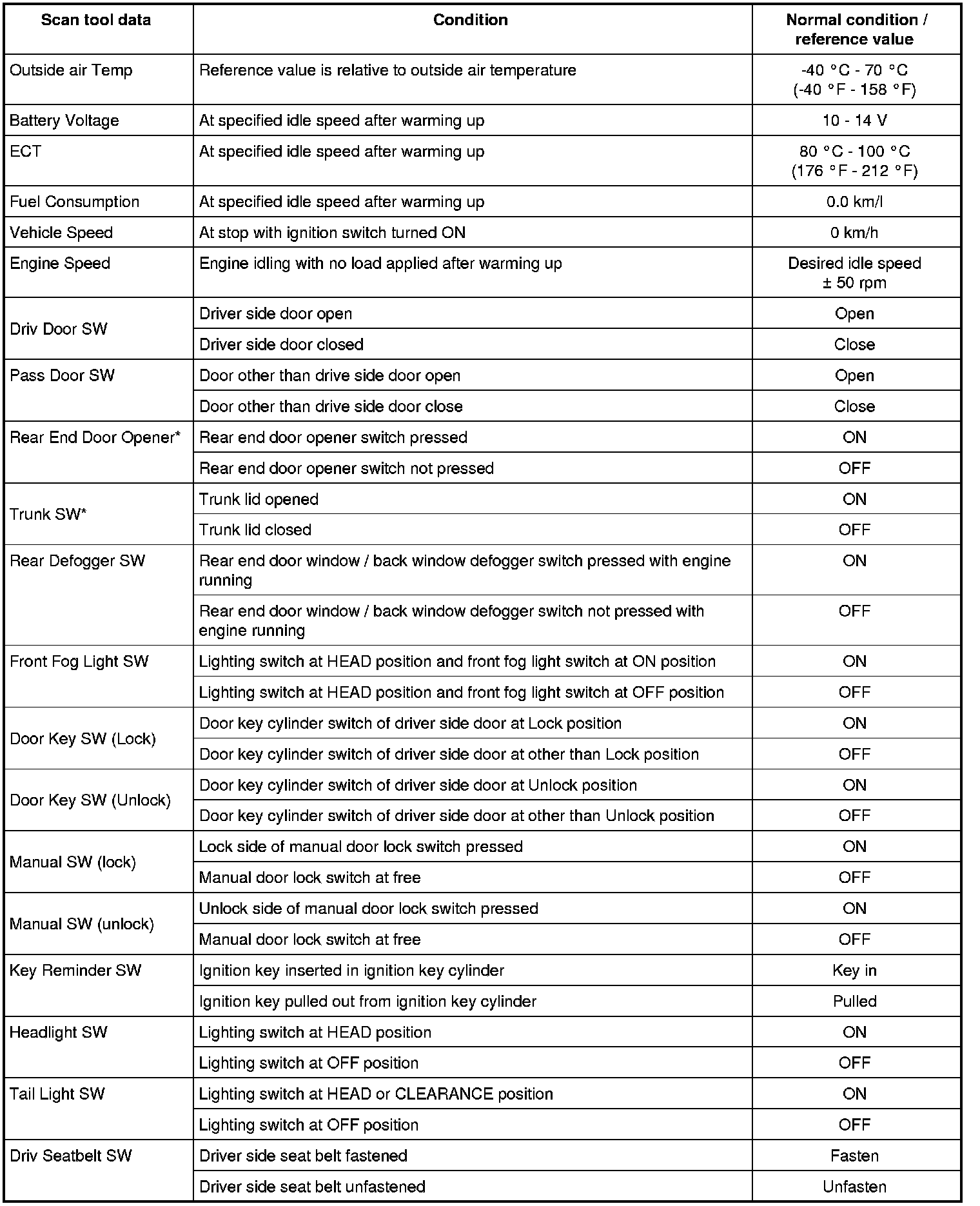 - Not data: Air bag communication circuit in normal condition.