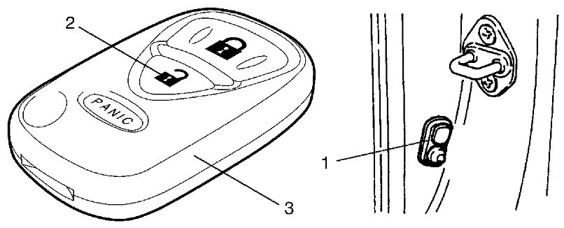 6) Push "UNLOCK" button (2) on transmitter (3) within 20 seconds after Step 5). All doors automatically lock and unlock once.