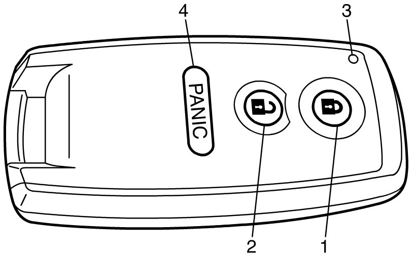 Check that remote controller operation indicator light (3) lights up when lock (1), unlock (2) or panic (4) button of remote controller is pushed.