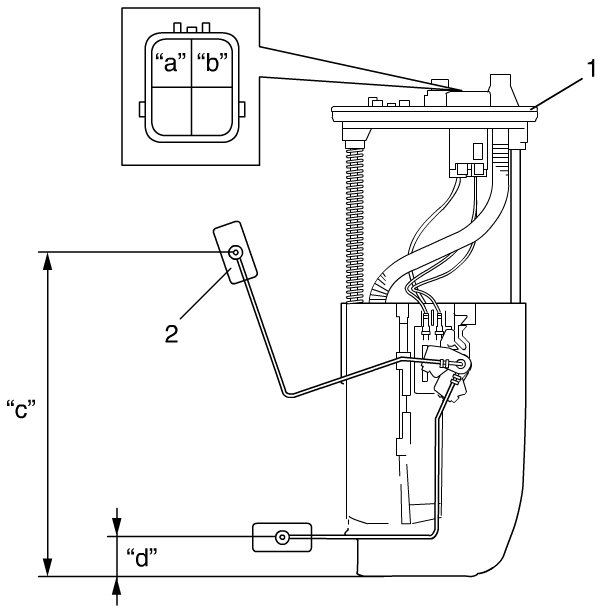 - Check that resistance between terminals "a" and "b" of fuel level sensor changes with change of float position.