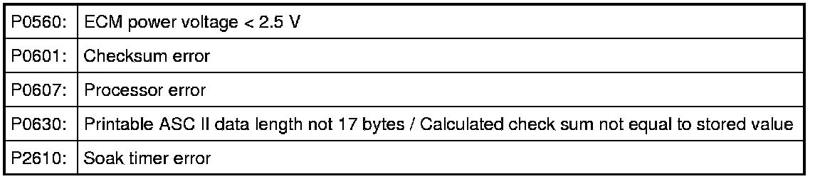 - ECM internal circuit / memory (P0560, P0601, P0607, P0630, P2610)