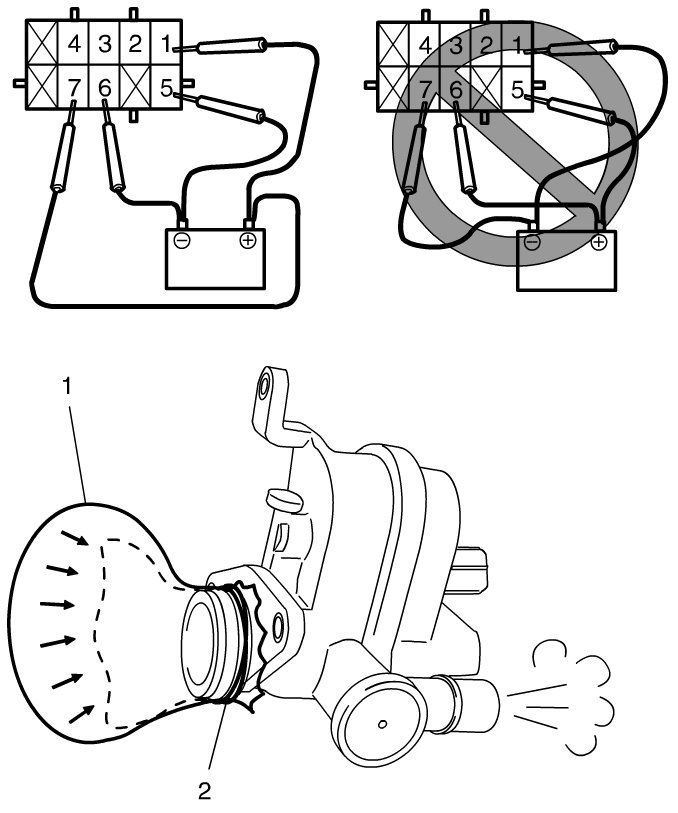 If the battery is connected to the wrong terminals of the EVAP leak check module, the EVAP canister vent valve and EVAP leak detection pump in the EVAP leak check module may be damaged.