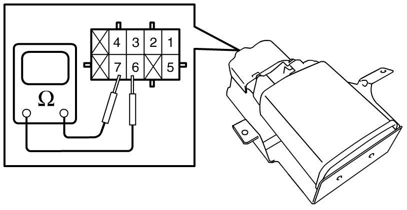 1) Check coil resistance of EVAP canister vent valve between terminal "6" and "7" in EVAP leak check module.