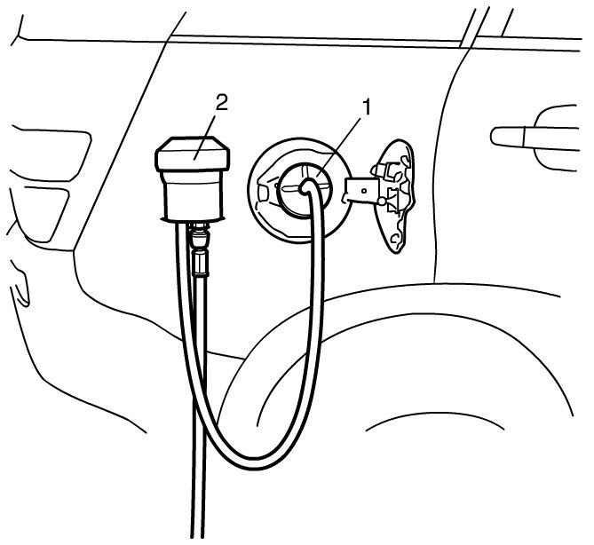 2) Connect the nitrogen/smoke hose onto the fuel cap adapter (1).