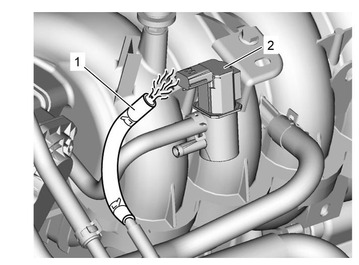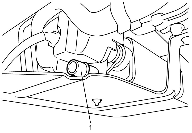 17) Disconnect pipe from the outlet nozzle (1) of EVAP leak check module.