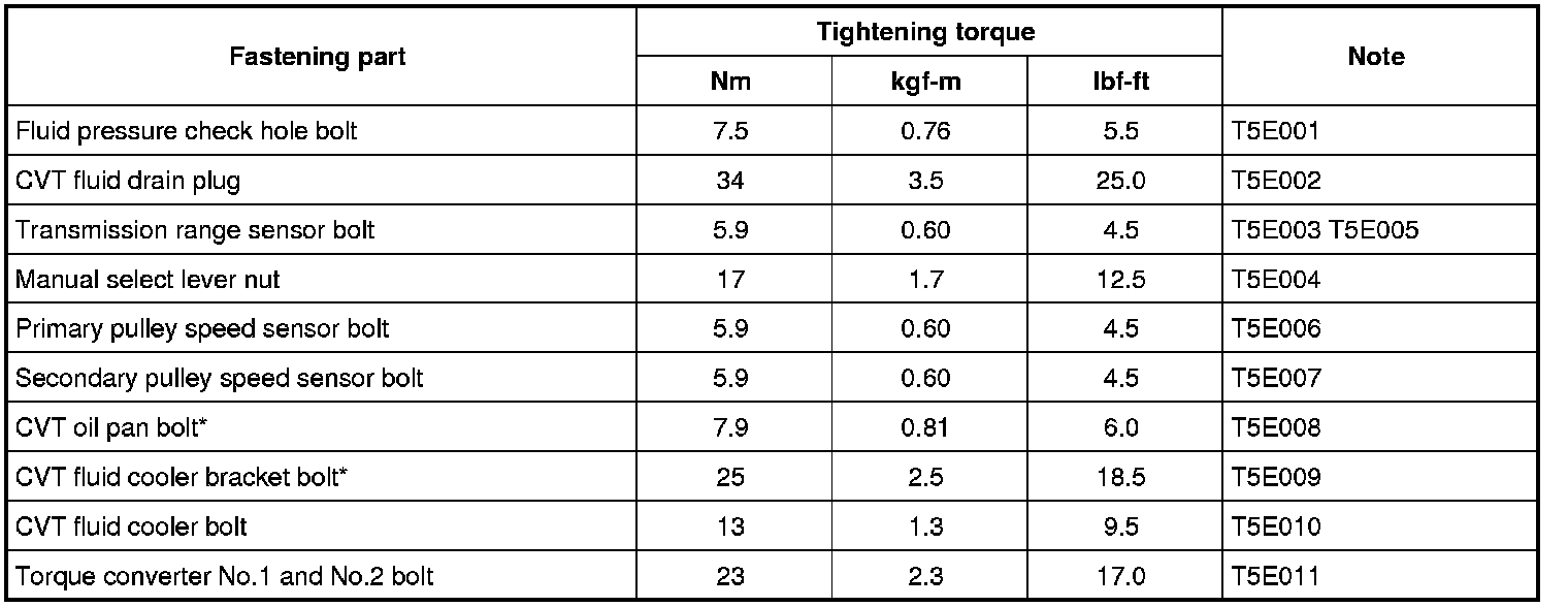 For the tightening torques of fasteners not specified in this section, refer to Fastener Information Fasteners Information.