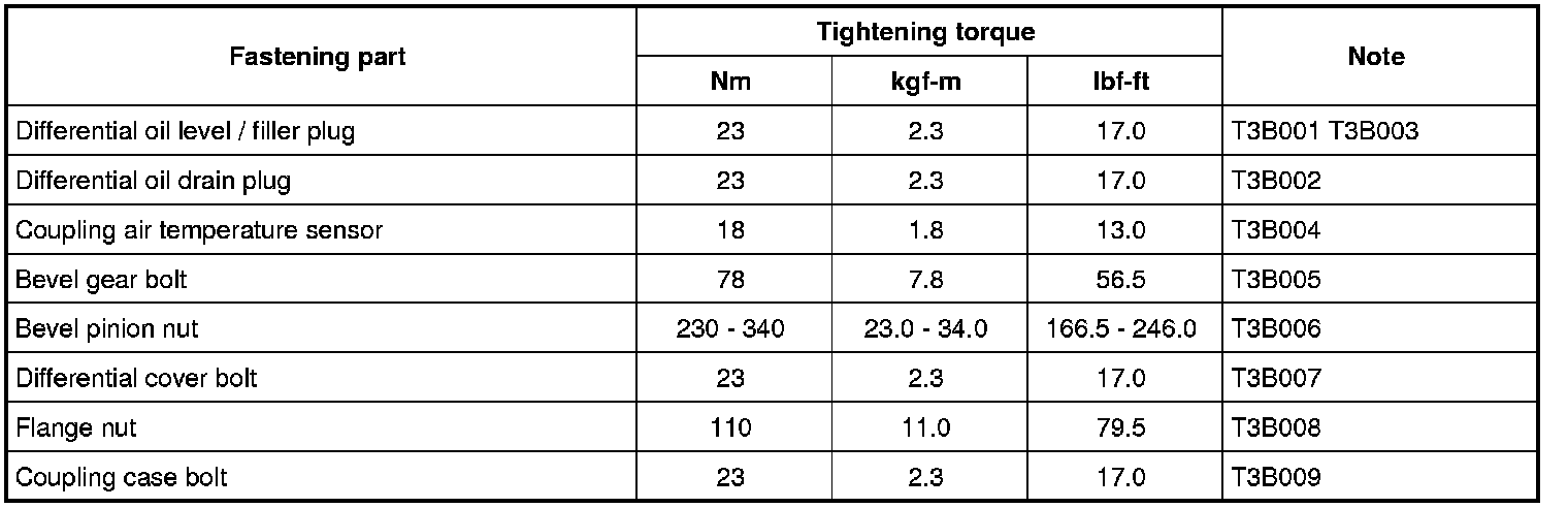For the tightening torques of fasteners not specified in this section, refer to Fastener Information Fasteners Information.